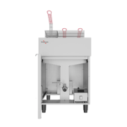 Fritadeira elétrica água e óleo. Seu controle rigoroso de temperatura e tempo de fritura garante a consistência dos resultados. Além disso, a alta potência e a rápida recuperação de temperatura fazem dela a escolha ideal para cozinhas com alto volume de pedidos.